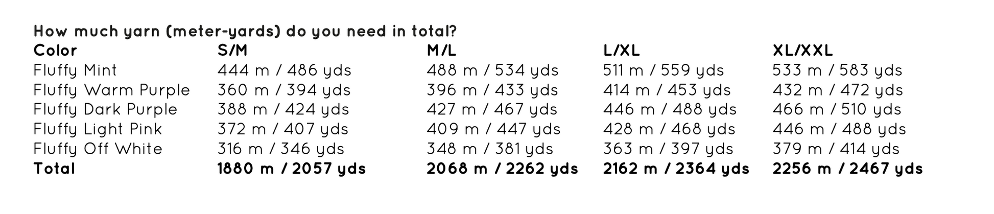 How much yarn do you need in total per color?